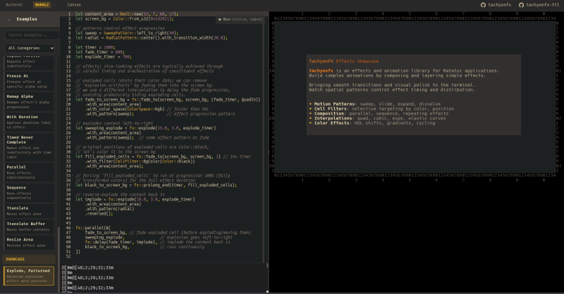 Section titled “Tachyonfx”An effects and animation library for Ratatui applications.
